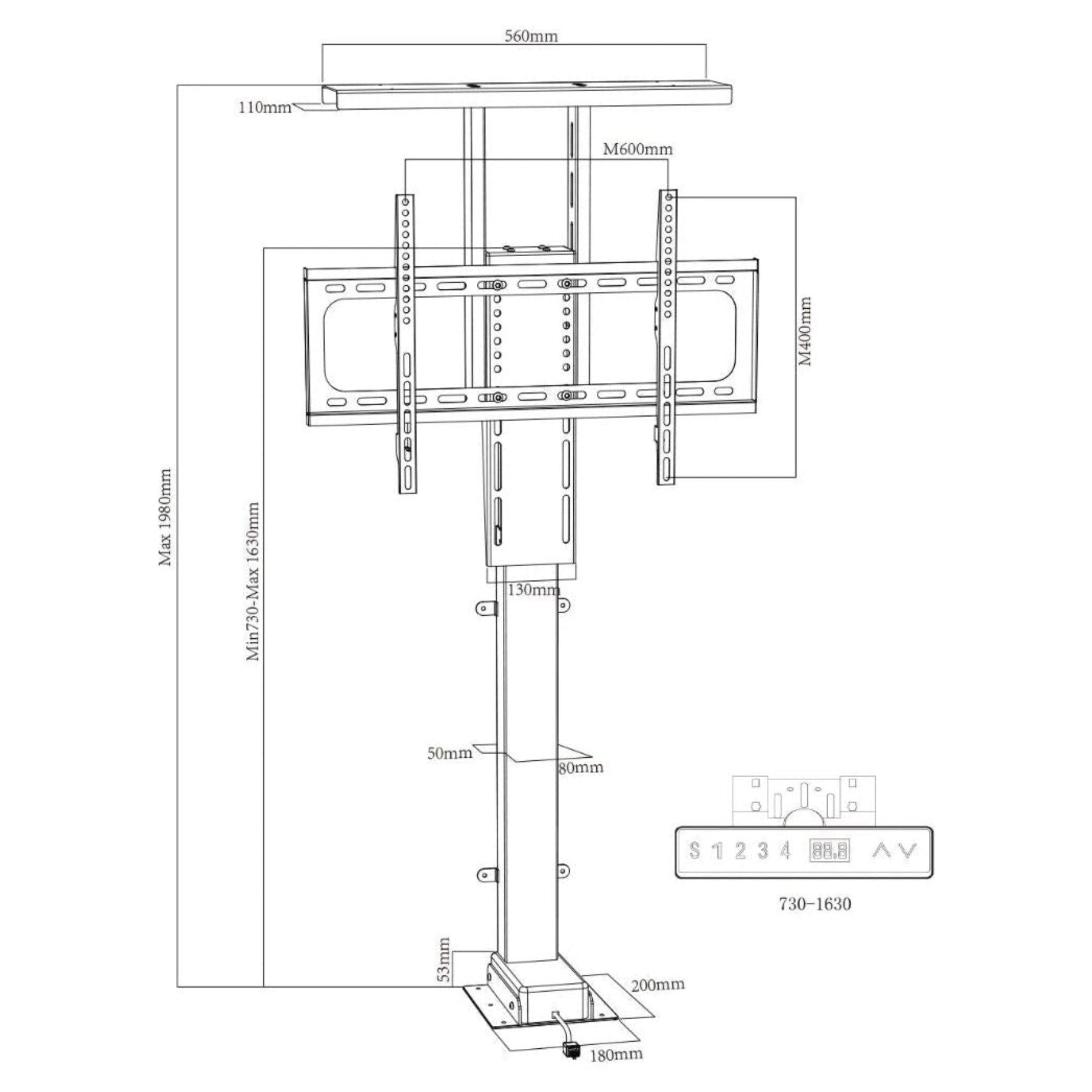 Enhance your entertainment setup with the Motorized TV Lift with Remote Control. This versatile lift can be mounted inside furniture or on walls, offering a sleek and modern way to manage your TV display. With adjustable height ranging from 73 cm to 163 cm and a sturdy build, it supports a variety of TV sizes. Control the lift effortlessly with the included remote or control panel for smooth height adjustments. Perfect for home theaters, offices, bedrooms or living rooms, this lift combines convenience and modern design.
