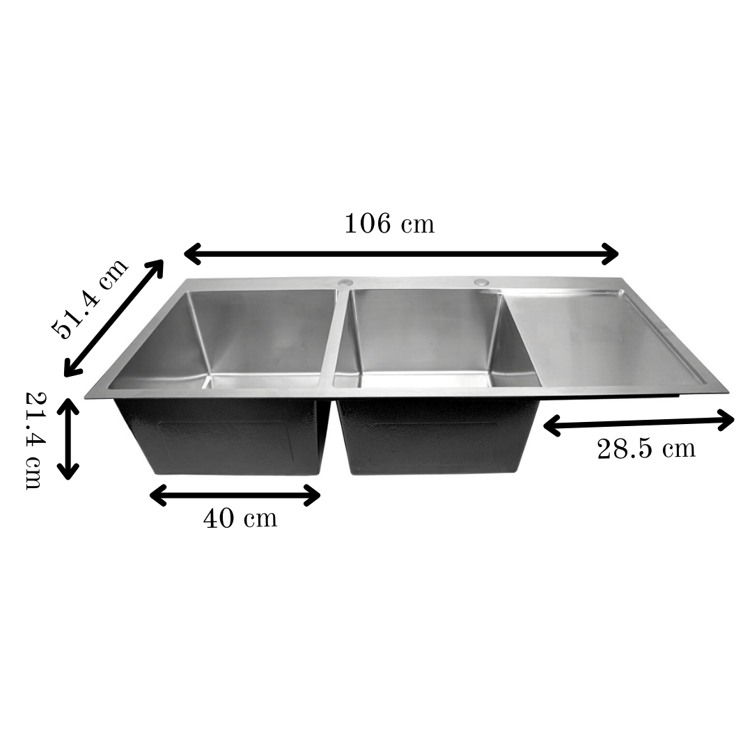 Enhance your kitchen functionality with the Vita Double Bowl Sink with Drainboard. Crafted from high-quality stainless steel, this sink offers exceptional durability, corrosion resistance, and anti-rust properties. The two spacious basins provide ample room for washing, rinsing, and food preparation, while the integrated flat drainboard keeps your countertop organized and makes air-drying dishes easy. Finished with a sleek gloss surface, this sink brings a modern, polished look to any kitchen.