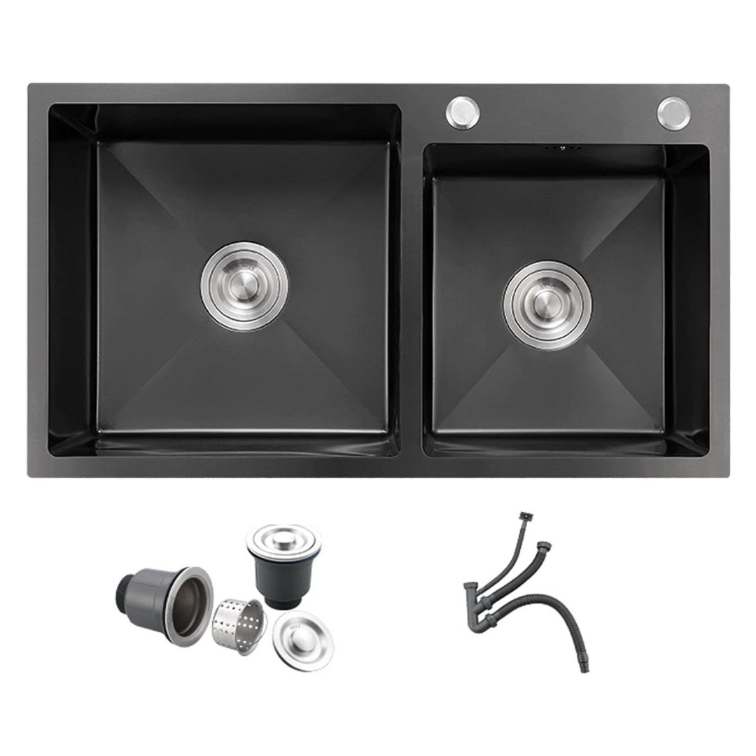 Double Bowl Stainless Steel Kitchen Sink with Dish Rack – 780 x 430 mm