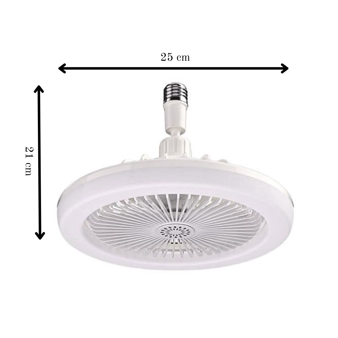 Compact screw-in fan with adjustable LED lighting and remote control