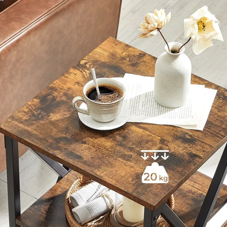 The Harlan Rustic Side Table brings industrial charm and everyday practicality into your space. With a warm rustic wood finish and a sturdy black steel frame, this compact piece adds style and storage wherever it’s placed. Featuring three open tiers, it’s perfect for holding books, décor, plants, or essentials, making it versatile for living rooms, bedrooms, or offices. Its small footprint fits neatly in tight spaces while still providing useful storage.