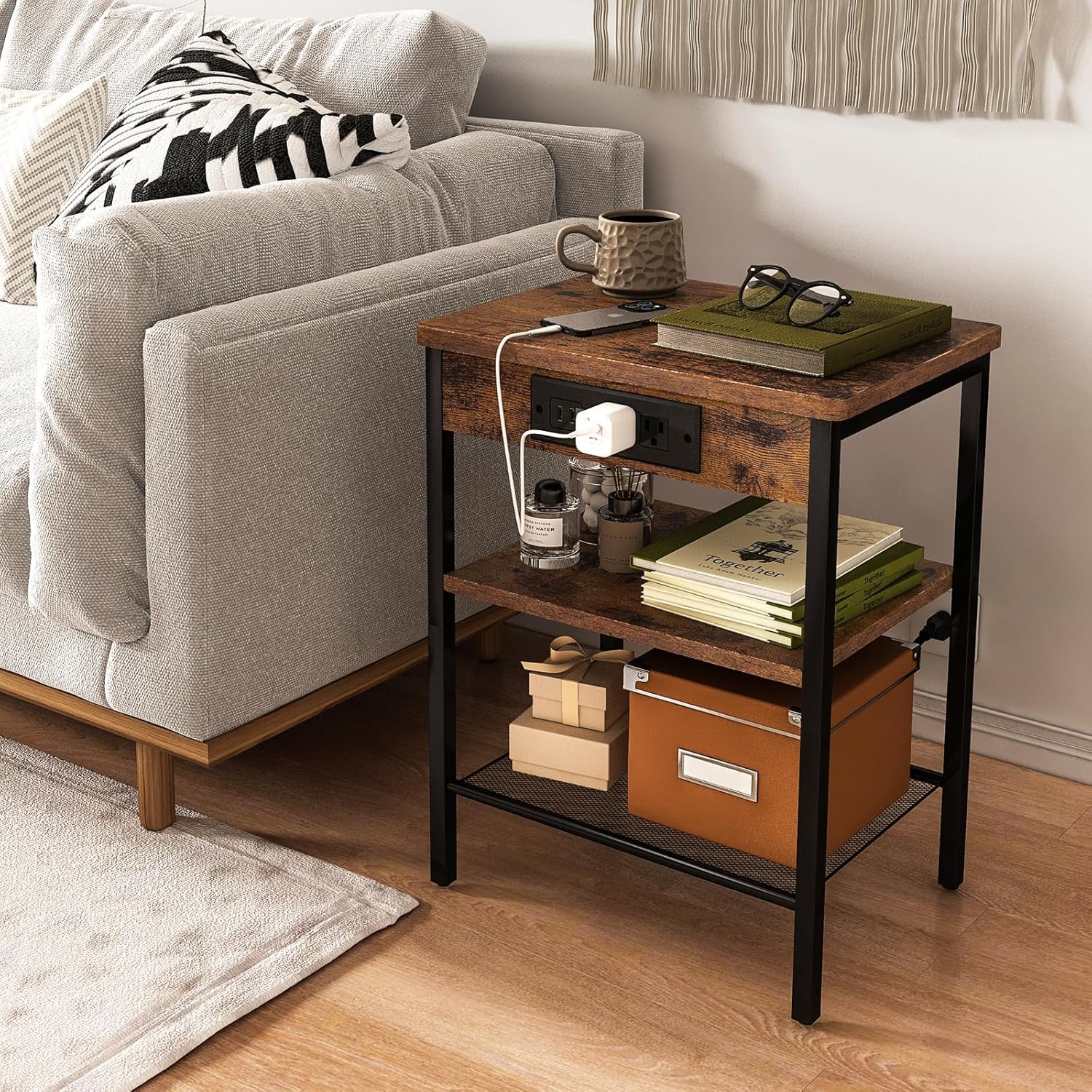 The Volt Side Table blends industrial style with modern functionality. Featuring a sturdy black steel frame and rustic wood surfaces, this side table offers both durability and character. Designed with three levels for versatile storage, it keeps essentials within easy reach while maintaining a sleek, compact footprint. The standout feature is the integrated plug point on the top surface, making it effortless to charge devices or power small appliances without cluttering your space.