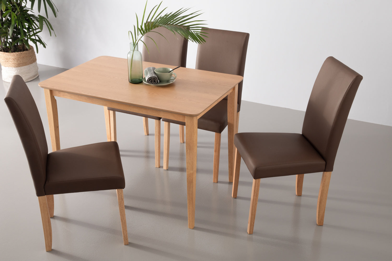 Elegant natural wood dining table with Malaysian Oak legs and Veneer top