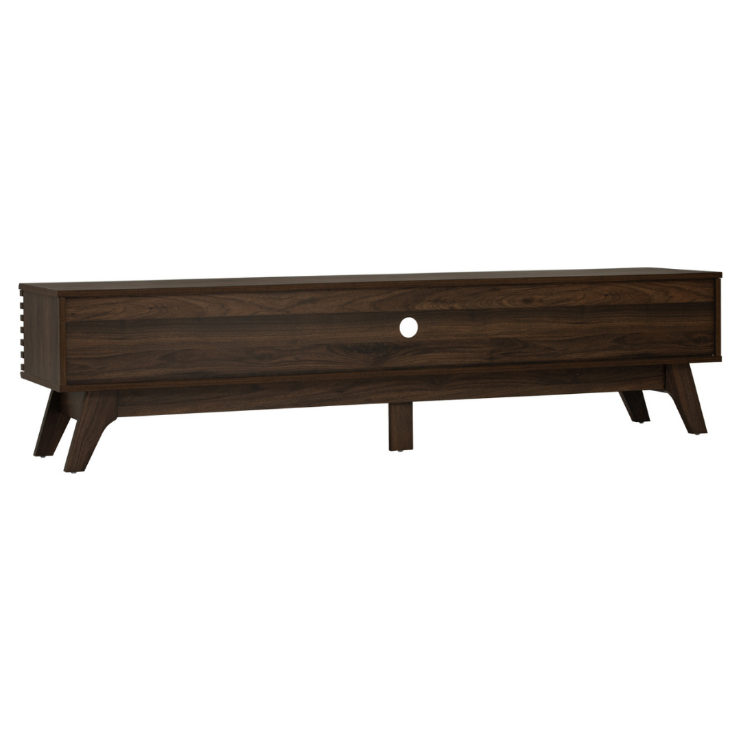The Floro TV Cabinet brings a blend of Japanese and Scandinavian-inspired design to your living room. Crafted from durable engineered wood with a dark walnut woodgrain finish, this sleek entertainment unit combines functionality with mid-century modern aesthetics.