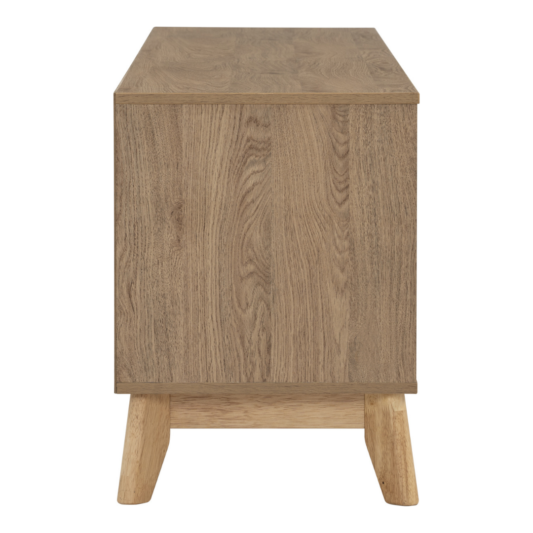 The Hirado TV Cabinet combines modern minimalism with practical storage solutions. Crafted from engineered wood with solid Malaysian Oak legs, this entertainment unit features a natural oak laminated body, offering a clean, contemporary aesthetic that complements a variety of interiors.