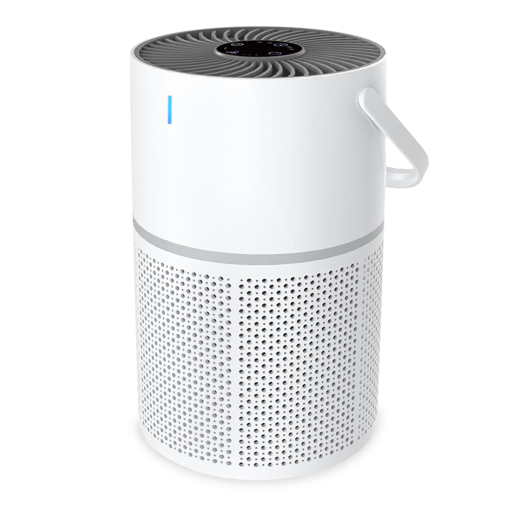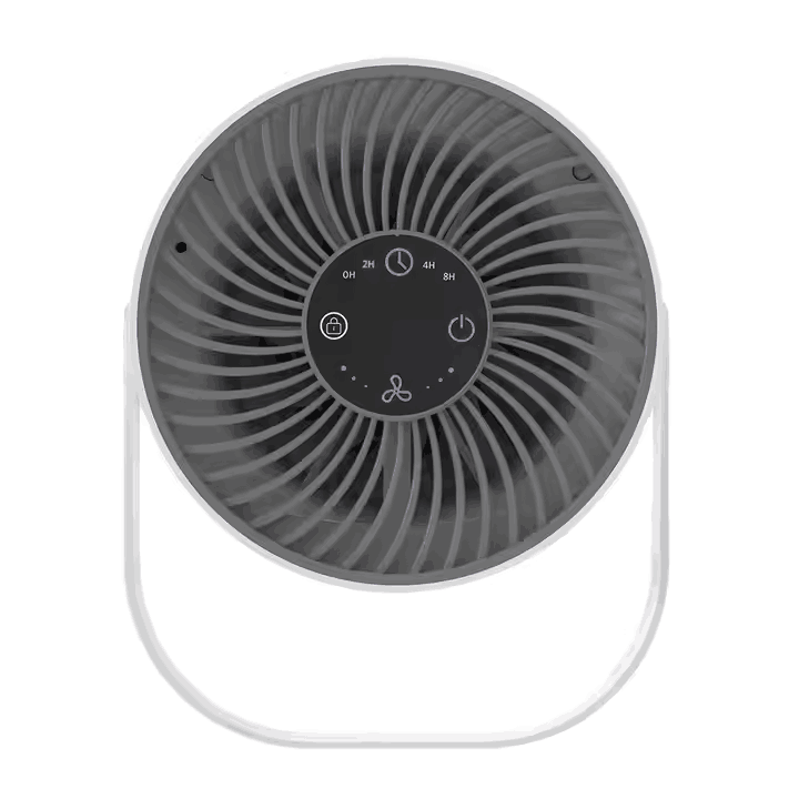 The Portable Air Purifier delivers clean, fresh air in a sleek and compact design. Its cylindrical body and built-in handle make it easy to move from room to room, ensuring healthy air wherever you go. The advanced HEPA filtration system efficiently removes dust, smoke, pollen, and other airborne particles, promoting a cleaner living space. Designed for convenience, it includes a timer function with 2, 4, and 8-hour options, three speed settings, and a child lock feature for added safety. Quiet operation ensures minimal noise, ideal for bedrooms, offices, or any indoor environment.