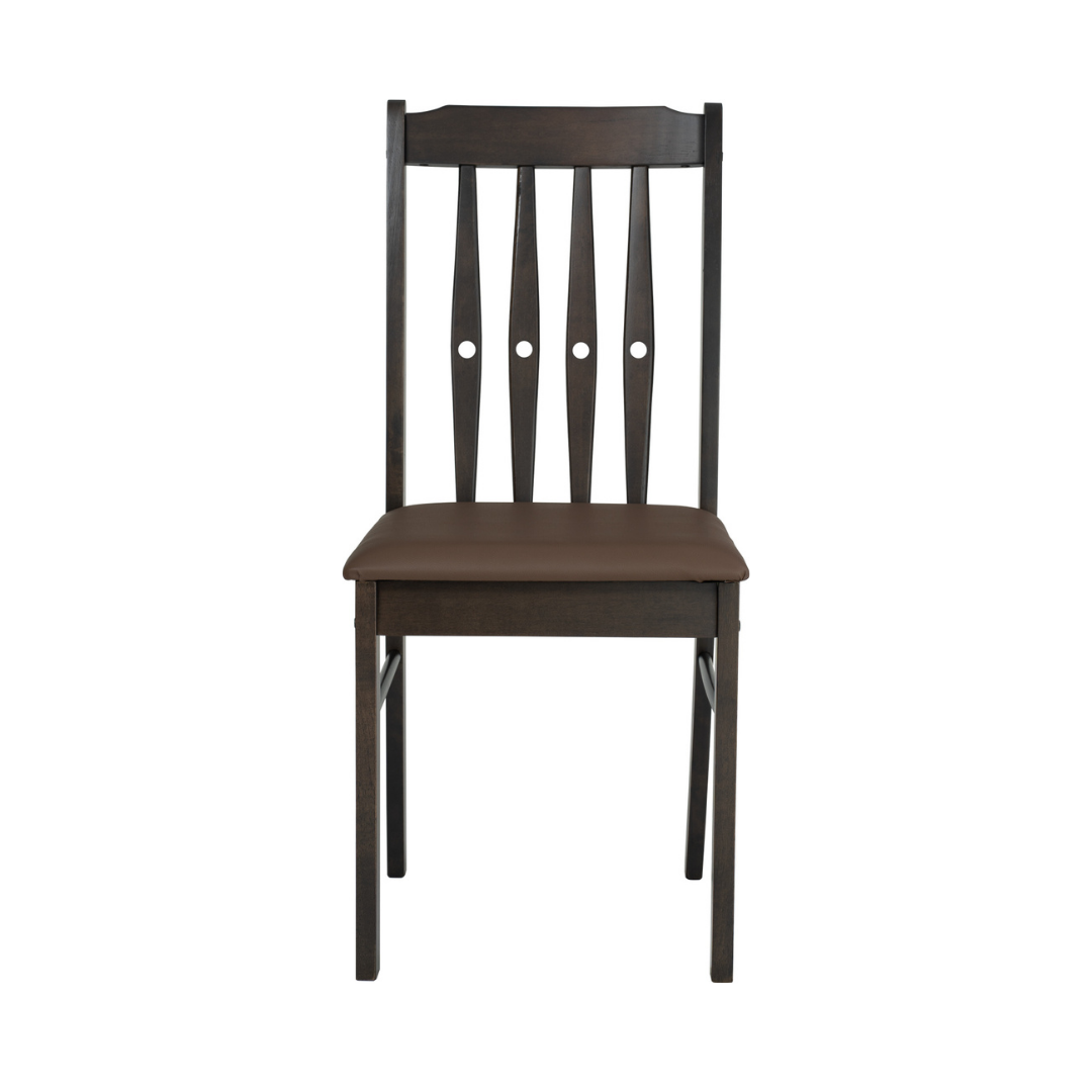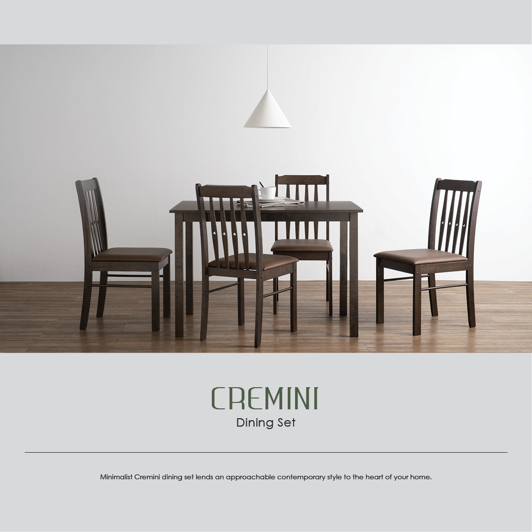 The Cremini Dining Set combines timeless style with comfort for everyday dining. This 5-piece set includes one sturdy rectangular table and four matching chairs. The chairs feature cushioned vinyl seats in mocha color for added comfort and easy maintenance. The table and chair frames are finished in a rich dark chestnut tone that blends effortlessly with a variety of interior styles. Ideal for kitchens, dining rooms, or small spaces, this set offers both durability and elegance for family meals or gatherings