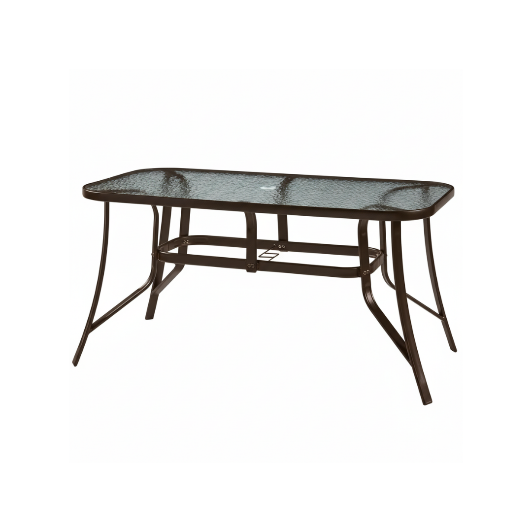 Elevate your outdoor dining space with the Glass-Top Patio Dining Table, the stunning centerpiece of the 6-Seater Collection. Expertly crafted for both elegance and durability, this table combines a sleek, tempered glass top with a robust, powder-coated metal frame to deliver style that stands up to the elements.