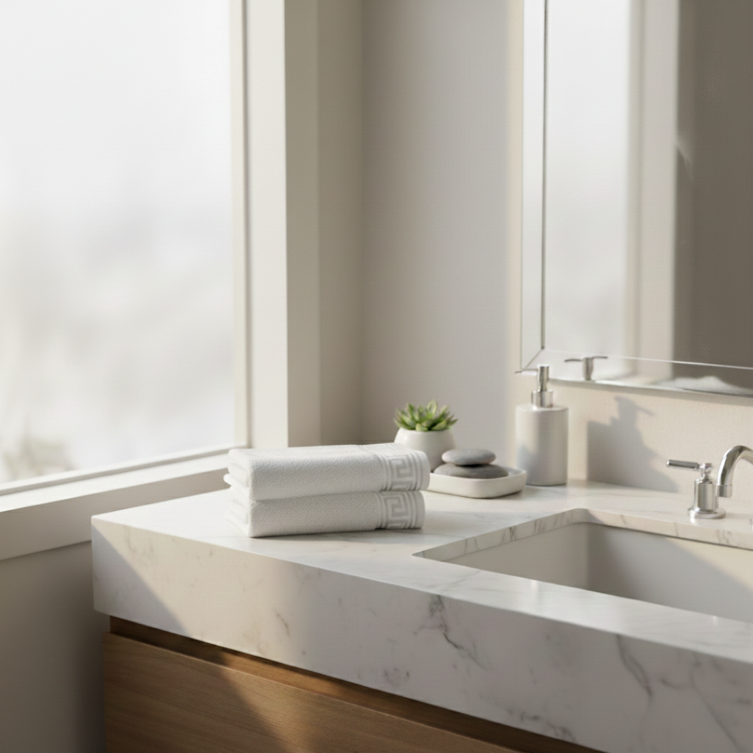 Elevate your bathroom or kitchen with the Jacquard Hand Towels. Crafted from soft and durable fabric, these towels offer excellent absorbency while adding a touch of elegance to your space. The jacquard weave creates a subtle pattern, giving each towel a refined look without being overpowering. Available in navy, sand, white, and dark grey, these hand towels complement any decor style. Perfect for everyday use or as a thoughtful gift, the set of 2 ensures convenience and style.