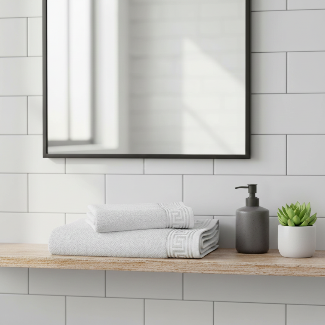 Elevate your bathroom experience with the Jacquard Towel Set, thoughtfully designed for comfort, durability, and style. Each set includes 1 hand towel and 1 bath towel, offering everything you need for daily use or as a stylish addition to your guest bathroom.