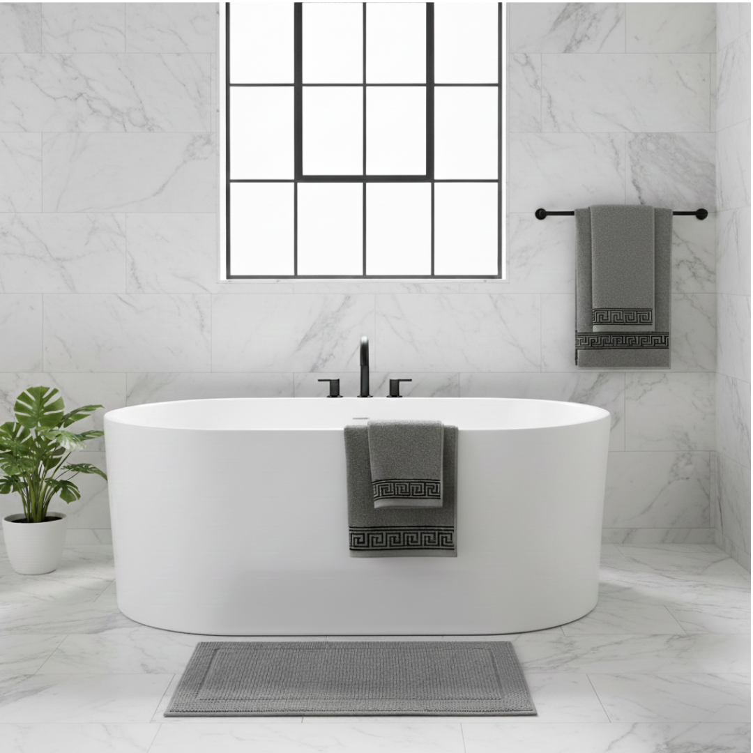 Crafted from high-quality, soft, and absorbent material, these jacquard towels provide a luxurious feel while remaining durable for everyday use. The elegant woven pattern adds texture and sophistication to your bathroom décor. Available in White, Navy, Dark Grey, and Sand, allowing you to choose the perfect shade to complement your bathroom style