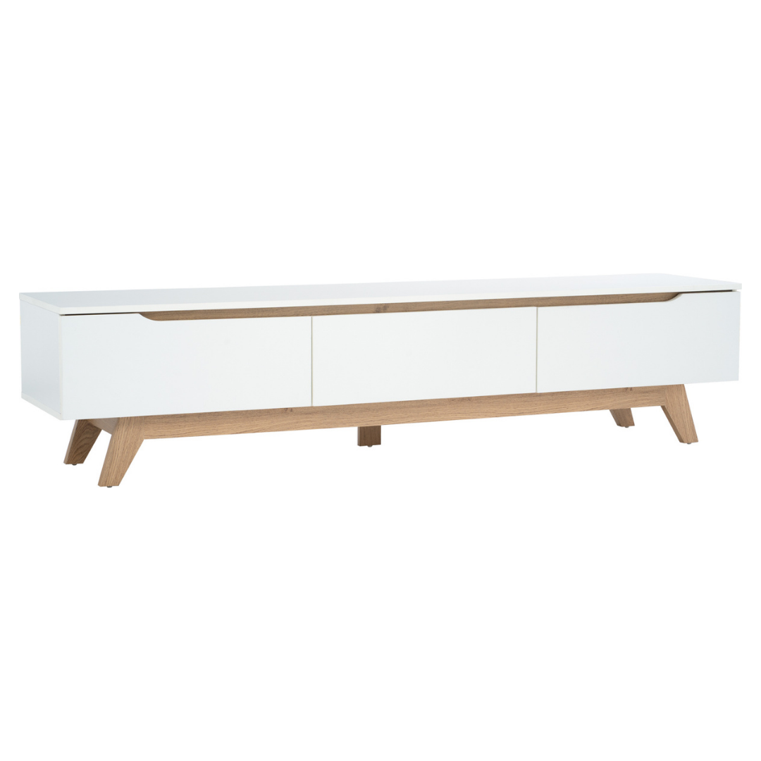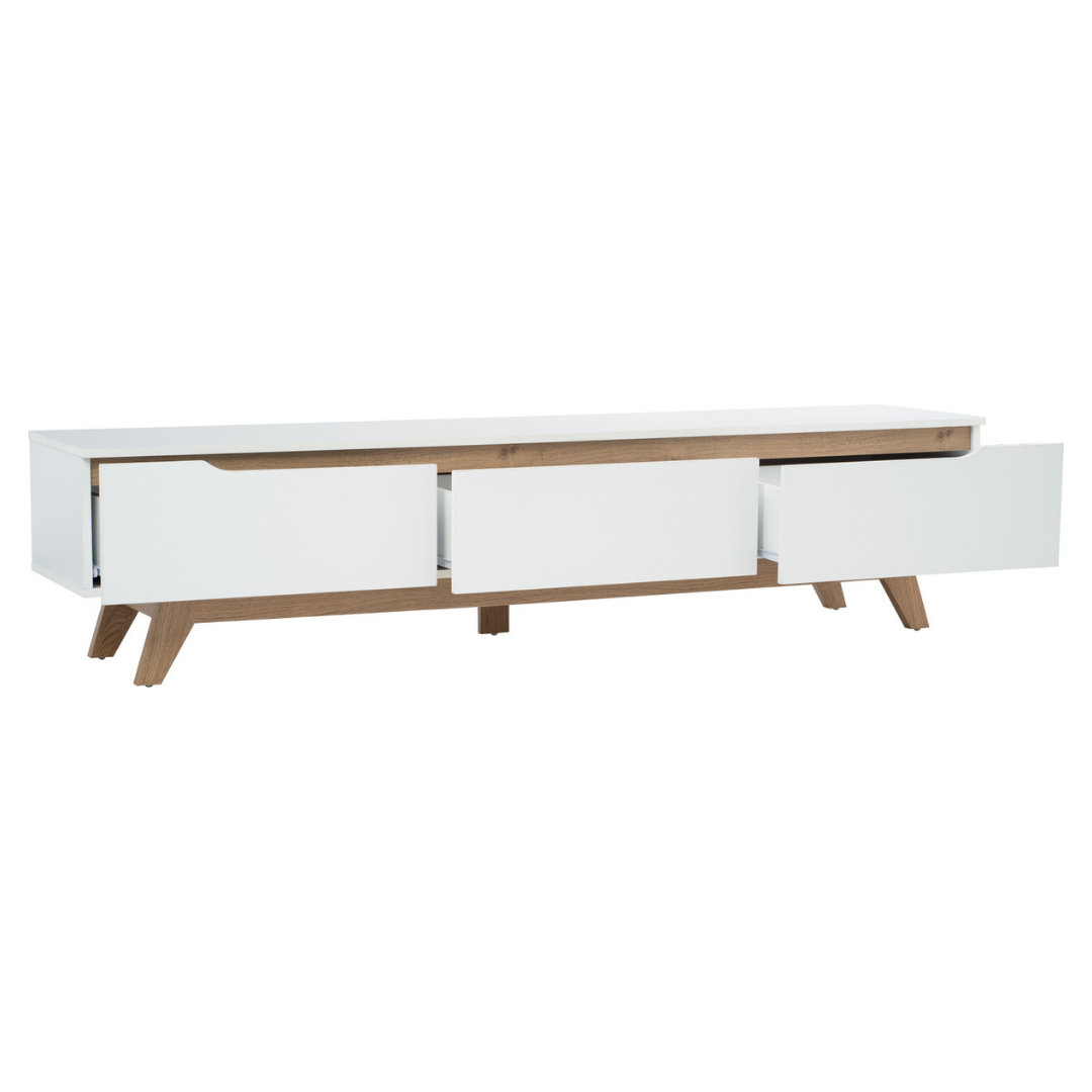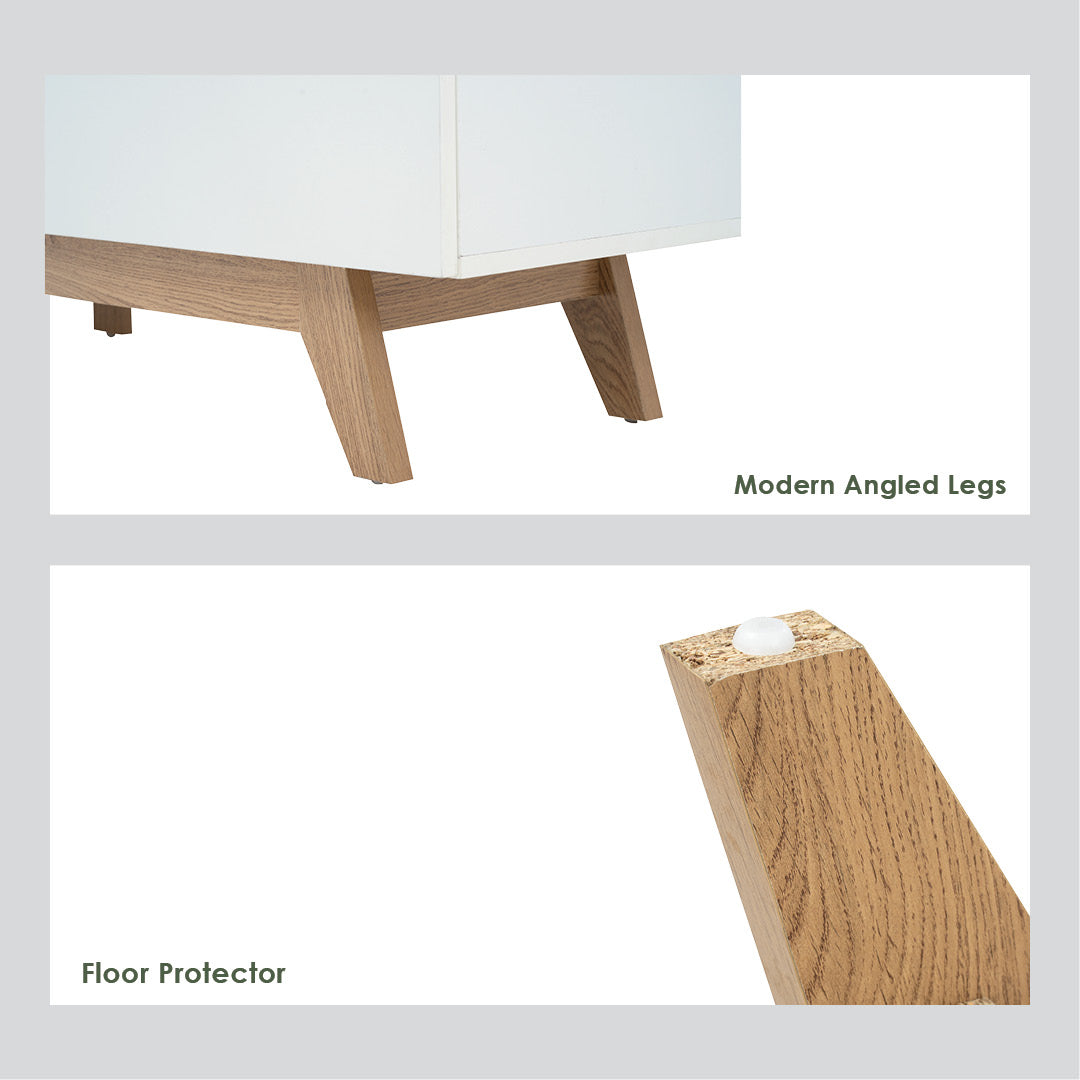 The Mando TV Cabinet brings sleek modern style to your living space with its Scandinavian-inspired design. Featuring a clean and minimalist aesthetic, it combines crisp white surfaces with natural wood-toned accents, making it a versatile piece that blends effortlessly into contemporary interiors.