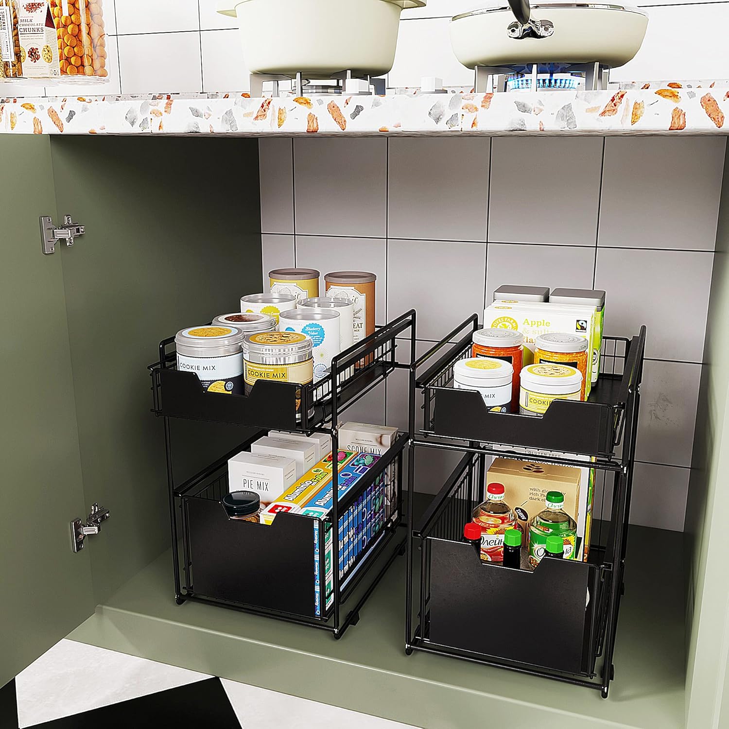 Compact under-sink organizer with sliding drawers