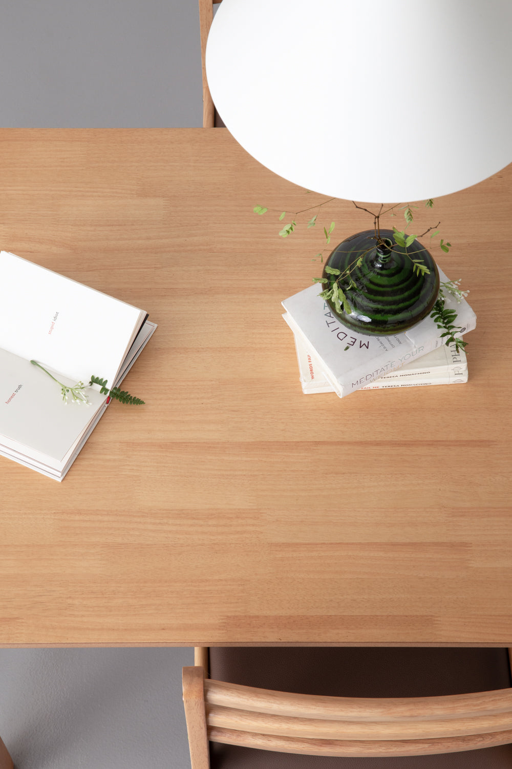 Tabletop crafted with MDF veneer and Malaysian oak legs